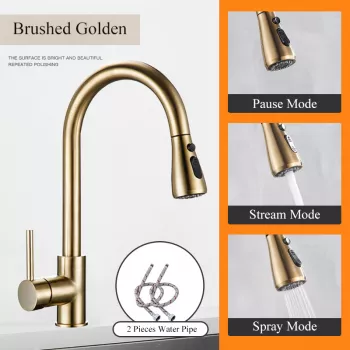 Black Pull-Out Kitchen Faucet with Silver Nickel Single Handle and Swivel Sprayer