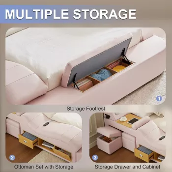 Luxury Smart King Bed Frame with Massage Recliner, USB, Storage & Speakers